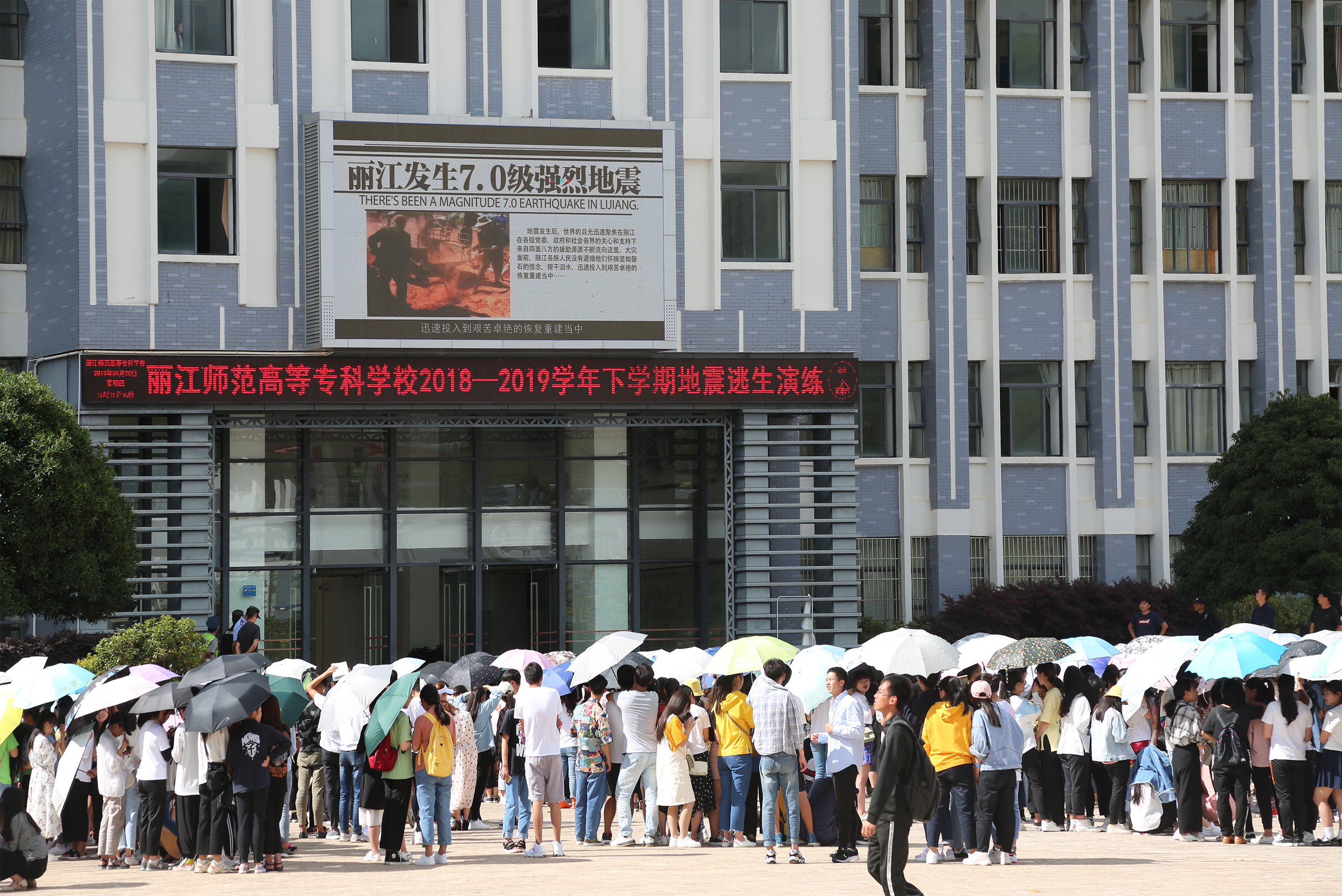 为认真贯彻落实丽江市委、市政府和丽江市教育体育局关于加强防震减灾工作的相关要求,切实提高我校师生应对地震灾害的应急避险和抗震救灾能力,我校保卫处联合学生处、后勤处等部门及各学院,于6月20日下午组织师生开展了2019年度地震应急疏散及抗震救灾演练活动。