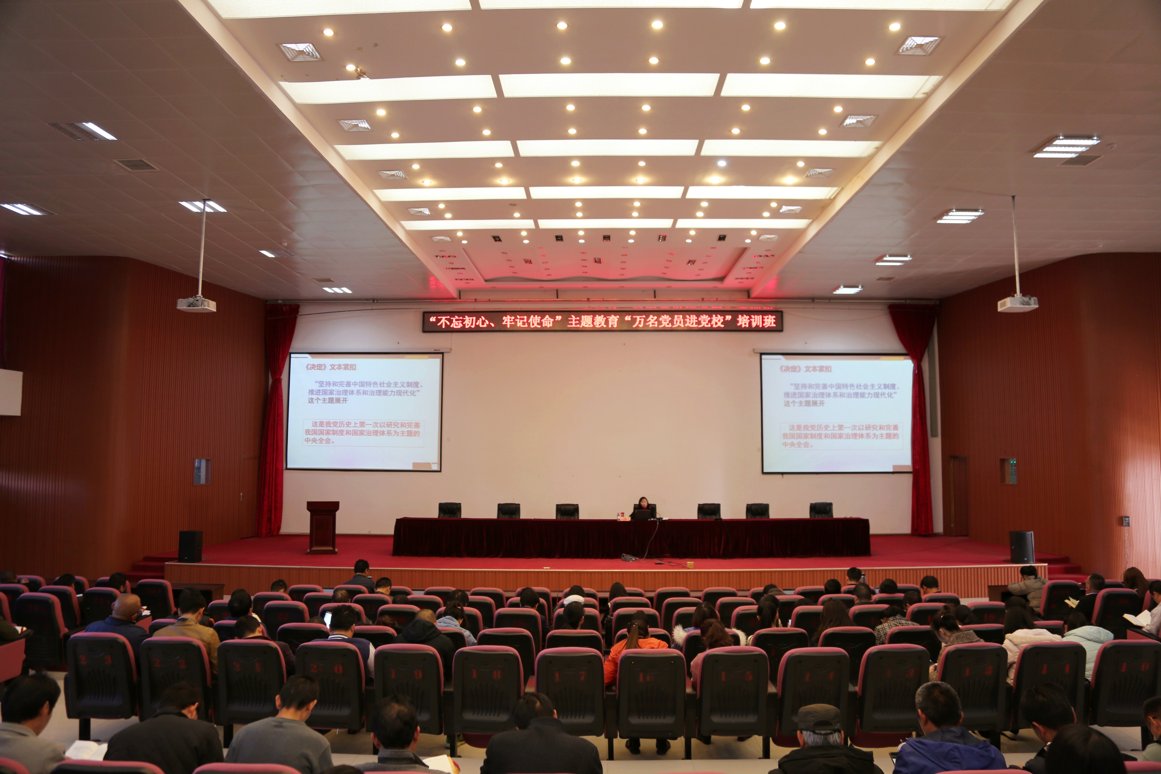11月29日下午,学习贯彻党的十九届四中全会精神丽江市委宣讲团成员柳传珍副教授应邀到我校宣讲党的十九届四中全会精神。此次宣讲也作为“不忘初心、牢记使命”主题教育“万名党员进党校”培训班的重点内容之一,200余名党员同志、入党积极分子到会聆听。